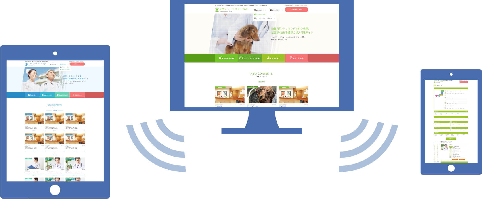 ユーザー のパソコン、 タブレット 、スマホのデバイスに関係なく、画面サイズに応じてホームページのデザインとレイアウトを自動的に見やすい表示に切り替えるデザイン(仕組み)。