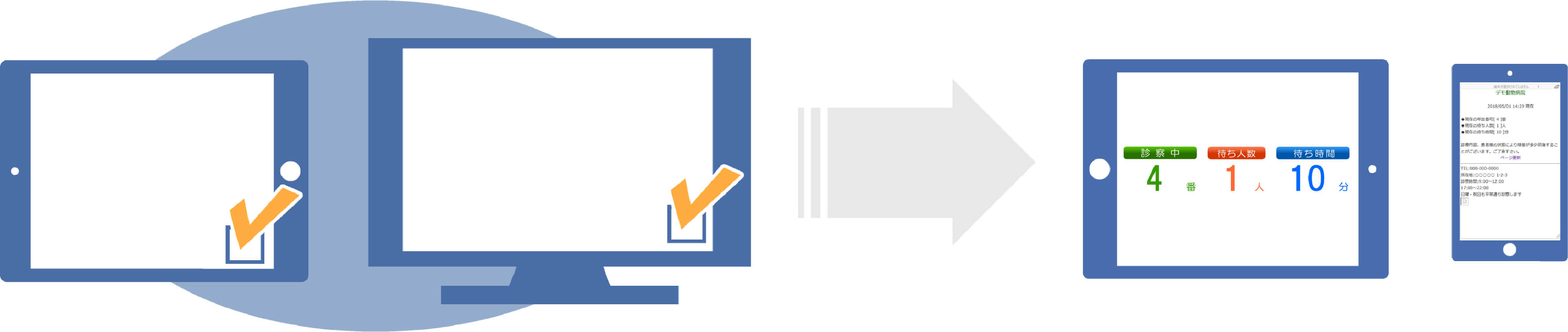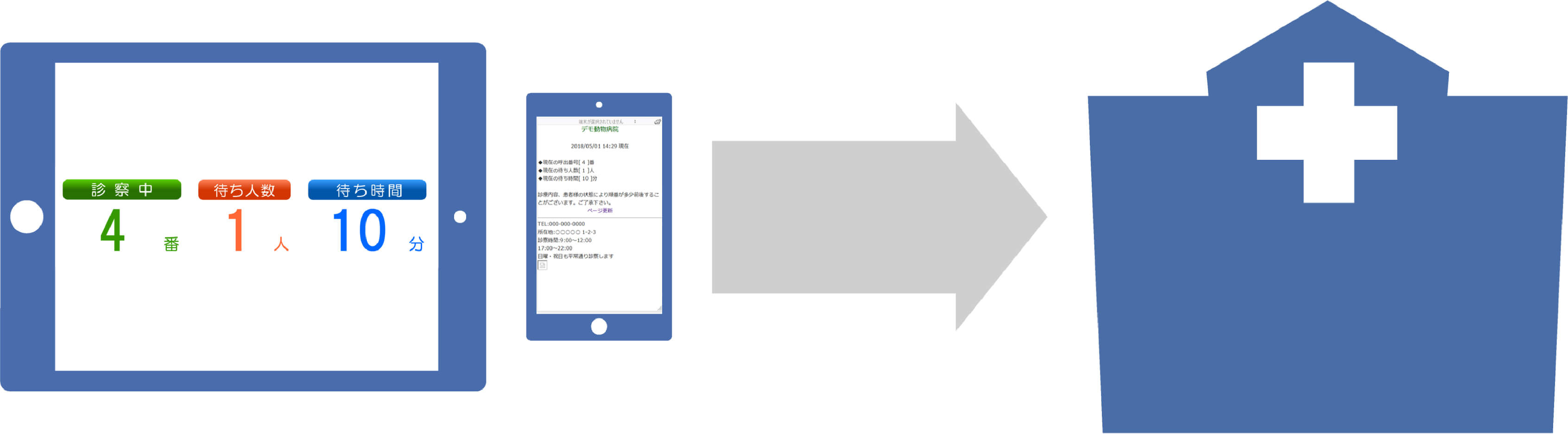 待ち人数案内は病院の混雑状況がご自宅でも分かり、混雑時に患者さんが集中することを